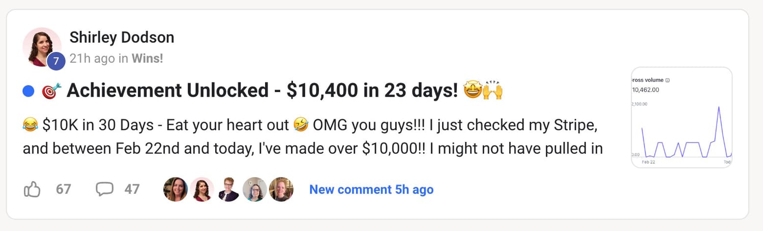 Become part of a dynamic, ever-growing community of over 40,000 members. Connect, ask questions, get real-time feedback, and find inspiration from the successes of fellow entrepreneurs.